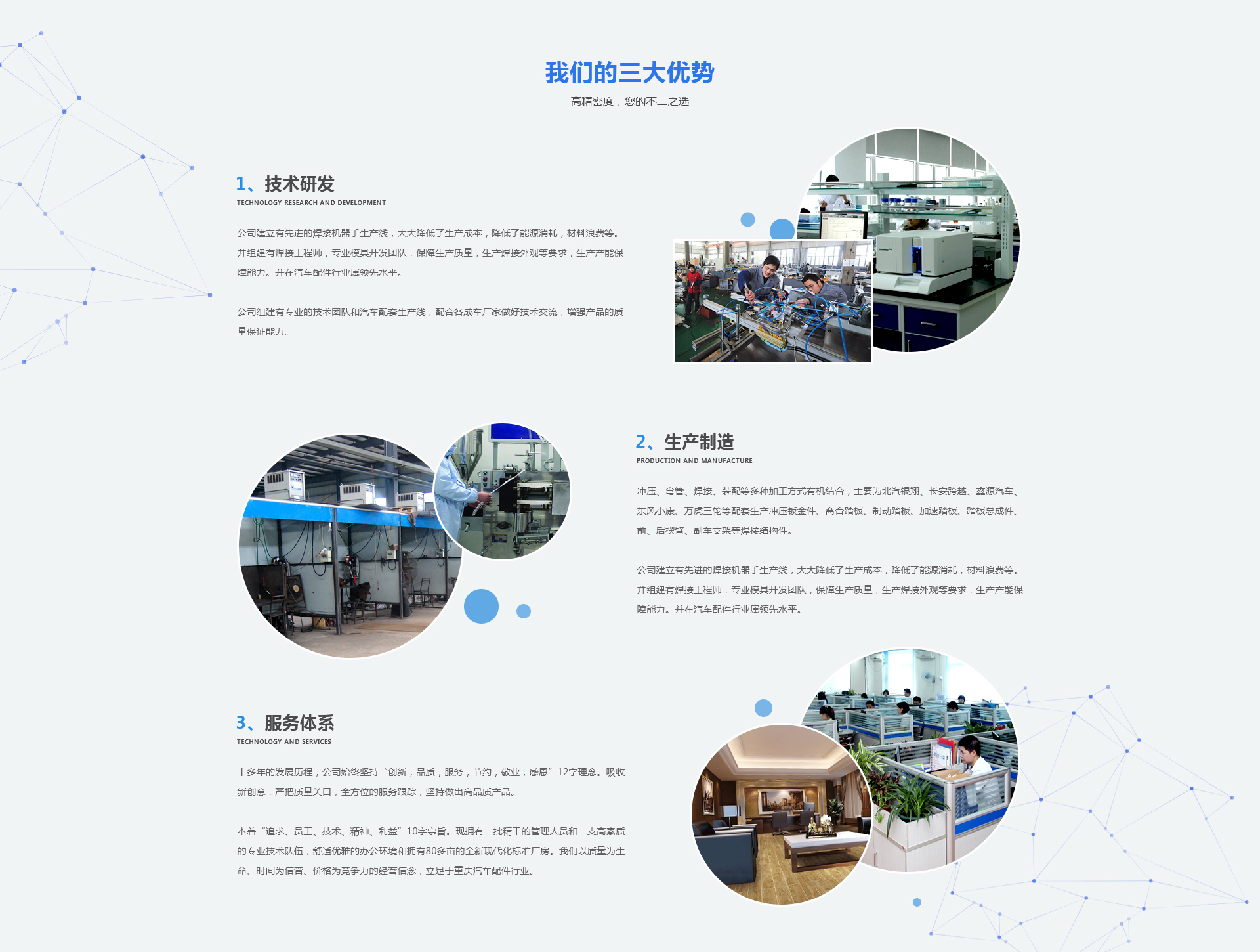 公司由建廠(chǎng)初期單一的沖壓加工逐步發(fā)展到?jīng)_壓、彎管、焊接、裝配等多種加工方式有機(jī)結(jié)合,主要為北汽銀翔、長(zhǎng)安跨越、鑫源汽車(chē)、東風(fēng)小康、萬(wàn)虎三輪等配套生產(chǎn)沖壓鈑金件、離合踏板、制動(dòng)踏板、加速踏板、踏板總成件、前、后擺臂、副車(chē)支架等焊接結(jié)構(gòu)件,深受用戶(hù)好評(píng)...